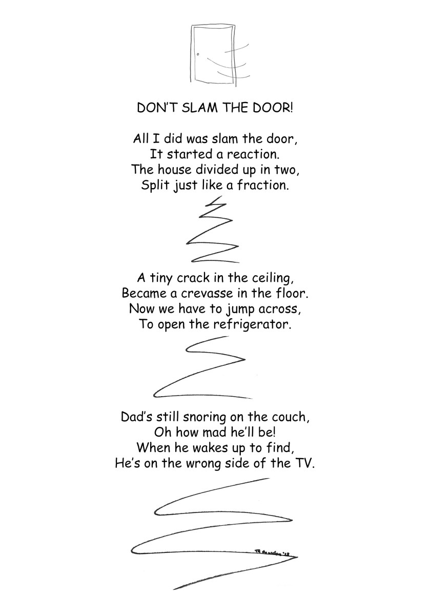 Don’t Slam the Door! Advice, art, artist, author, Comic, Creative, Creative writing, Dad, Father, Father’s Day, funny, Home, illustration, lesson, Life, Lifestyle, Poetry, Rhymes and Reasons, television, TV, Word Play, words, writing www.etsy.com/shop/WildLiketheFlowers Share this: Click to share on X (Opens in new window) X Click to email a link to a friend (Opens in new window) Email Click to share on Pinterest (Opens in new window) Pinterest Click to print (Opens in new window) Print More Click to share on Facebook (Opens in new window) Facebook Click to share on Tumblr (Opens in new window) Tumblr Click to share on Reddit (Opens in new window) Reddit Like Loading...