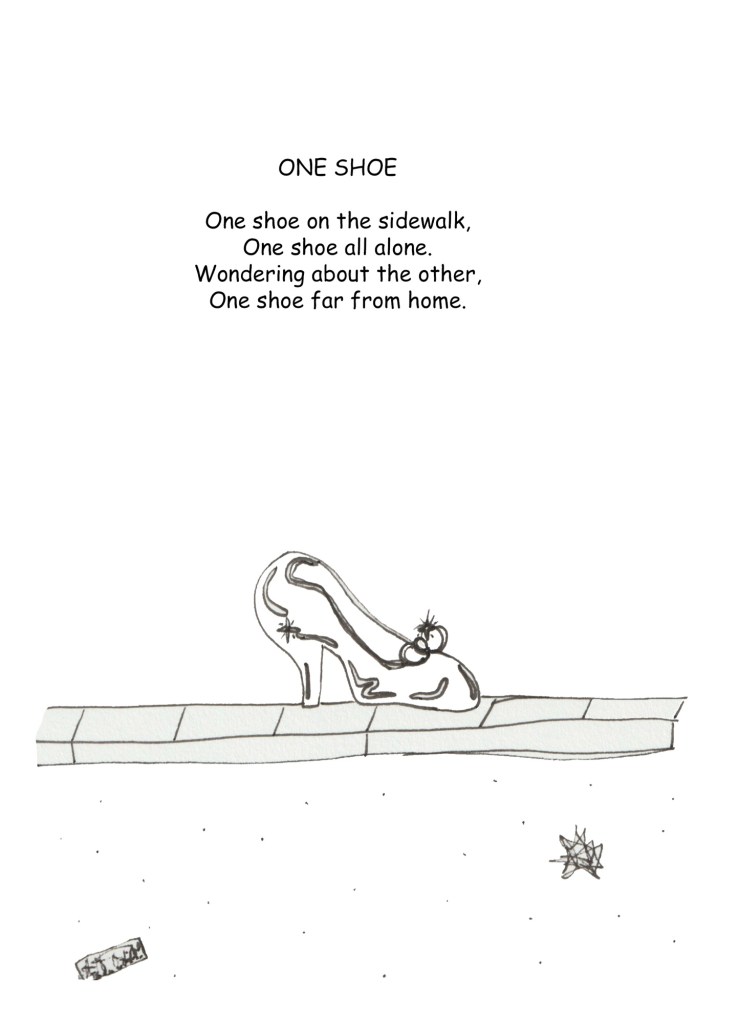 One Shoe adventure, alone, art, Cinderella, Creative writing, Glass slipper, High heels, illustration, Life, Lifestyle, mystery, philosophy, Poetry, relationships, Rhymes and Reasons, Self improvement, Sunday Funnies, Wild Like the Flowers, words, writing Wild Like the Flowers Merch Shop Support your loco artist